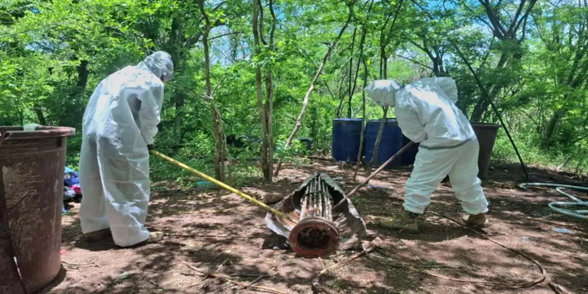 Elementos del Ejército aseguraron un laboratorio clandestino y miles de litros de precursores químicos en dos poblados de Culiacán este lunes