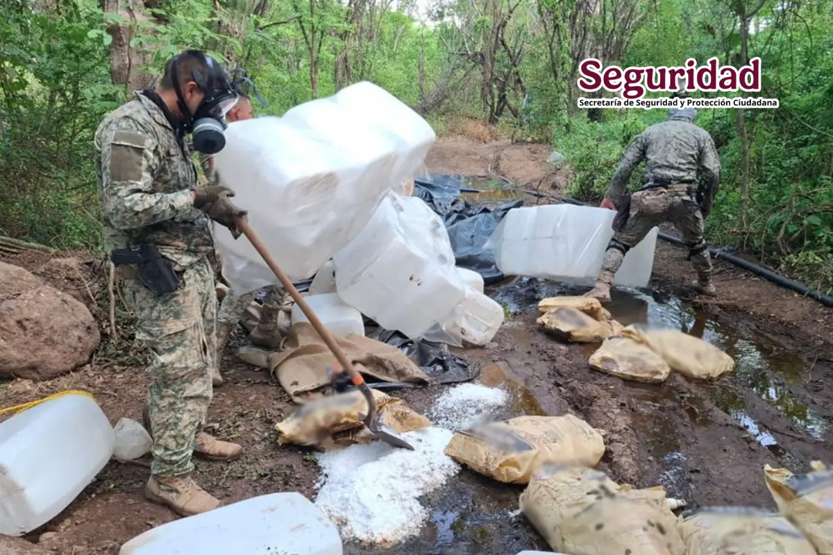 Poblados El Cedrito y El Alhuate: Desmantelamiento de un laboratorio clandestino con 5,500 litros y 1,325 kg de sustancias químicas, afectando al crimen en 536 millones de pesos.
