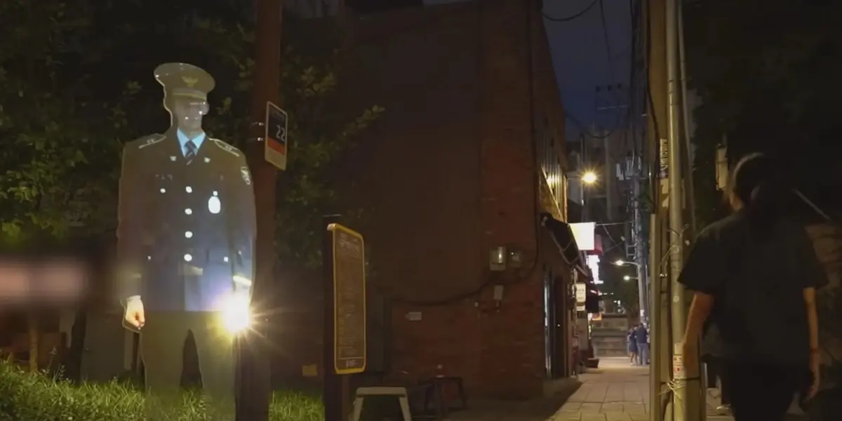Cada noche, entre las 19:00 y las 22:00 horas, un policía uniformado de más de 170 cm de altura aparece como un holograma en el Parque Judong, una concurrida zona de Seúl ubicada en Jung-gu. Se trata de una imagen en 3D, lo que da mayor sensación de realidad.
