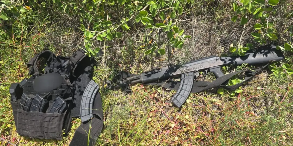 Un fusil AK-47, siete cargadores y un chaleco con placas balísticas fueron asegurados por fuerzas federales en un operativo realizado en Navolato, Sinaloa