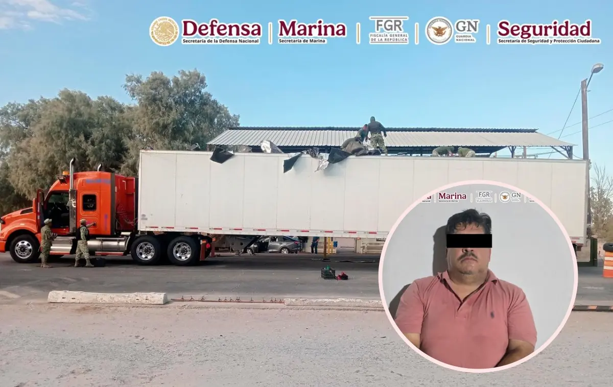 De acuerdo con el Gabinete de Seguridad, durante labores de inspección en el municipio sonorense, los agentes detectaron que un tractocamión acoplado a una caja seca que, al ser revisado, presentaba irregularidades y modificaciones en la parte del techo de la caja.