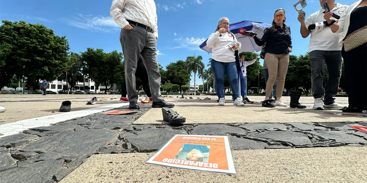 Culiacán, Sinaloa.- Rubén Rocha Moya, gobernador de Sinaloa reiteró su solidaridad y apoyo a los colectivos de búsqueda de personas desaparecidas. Esto durante un diálogo establecido con colectivos, ante el memorial de zapatos colocados sobre la explanada del Palacio de Gobierno, como símbolo de las ausencias y de no cejar en el empeño de encontrarlas.
