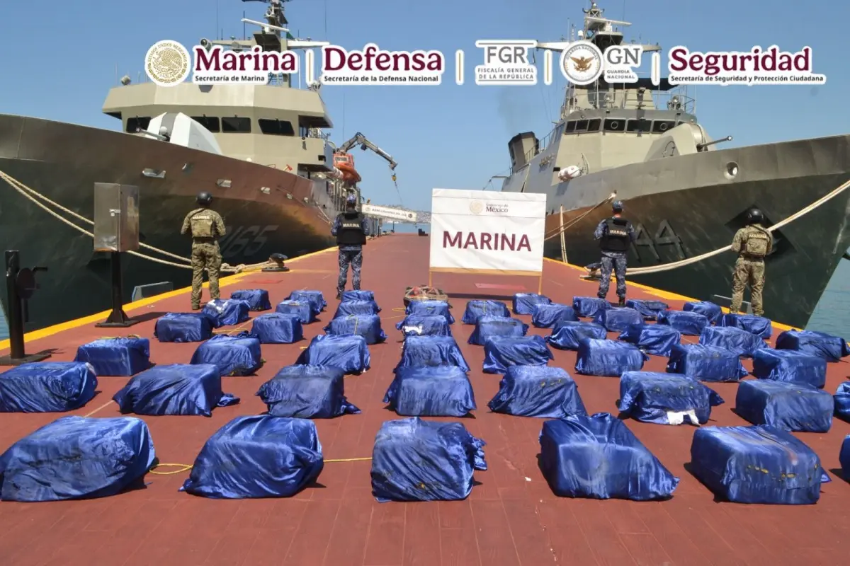 Más de 1.6 toneladas de cocaína fueron aseguradas frente a las costas de Guerrero en una operación marítima encabezada por la Secretaría de Marina