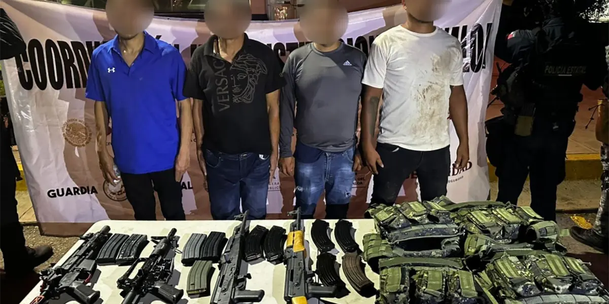 Un operativo conjunto de fuerzas federales y estatales en Culiacán permitió detener a cuatro personas armadas con fusiles AK-47, carabinas y equipo táctico en el fraccionamiento Los Ángeles