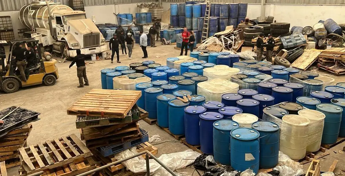 - Cerca de 200 tambos con solventes, thinner y ácido clorhídrico.
