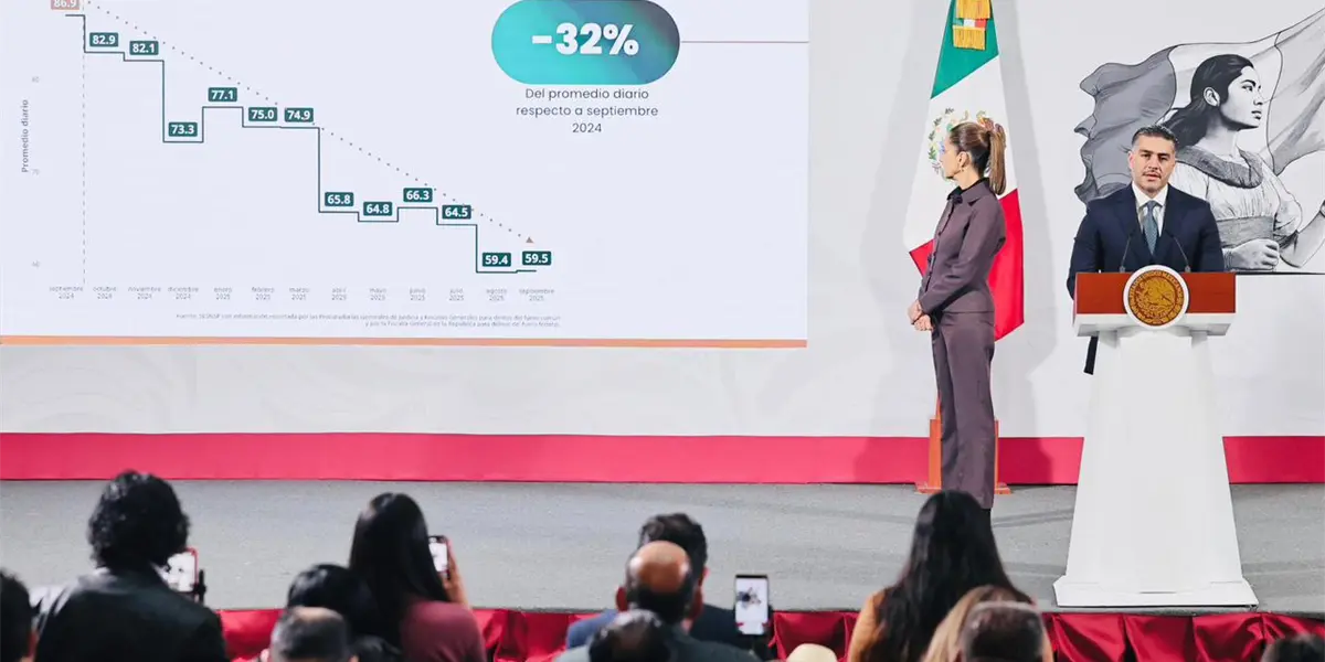 El funcionario informó que el delito de homicidio doloso se redujo un 32% en septiembre de 2025, el nivel más bajo en una década.