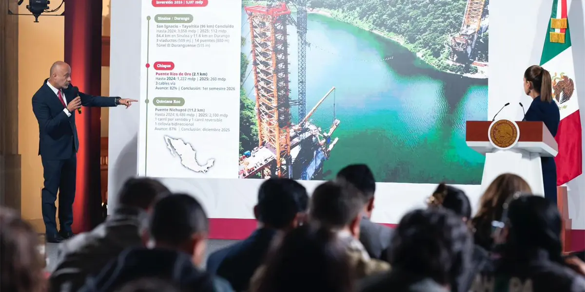• La obra de San Ignacio – Tayoltila ya está terminada. Es una obra de 96 kilómetros; el puñete Riso de Oro en Chiapas tiene un avance del 82%