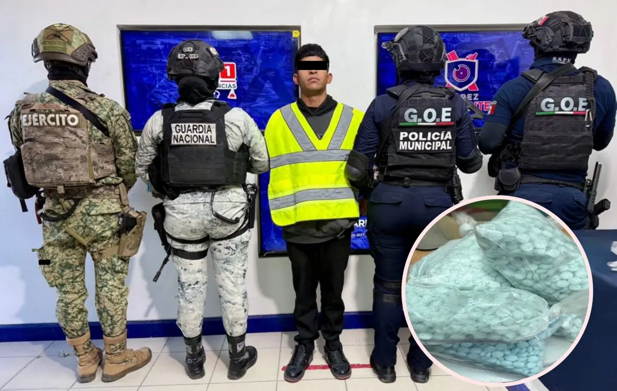 Fuerzas de seguridad detuvieron a un hombre en Ciudad Juárez, Chihuahua, a quien le aseguraron 6 mil 200 pastillas de fentanilo, así como un fuerte arsenal de armas y municiones, como parte de la "Operación Frontera Norte"