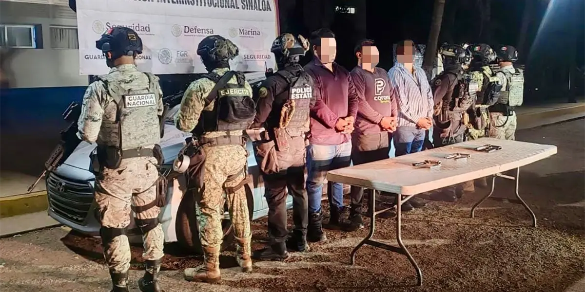 Tres hombres fueron detenidos y se aseguraron armas y un vehículo robado durante un operativo interinstitucional en las colonias, Culiacán, Josefa Ortiz de Domínguez y Buena Vista, resultado de la coordinación entre fuerzas estatales y federales.