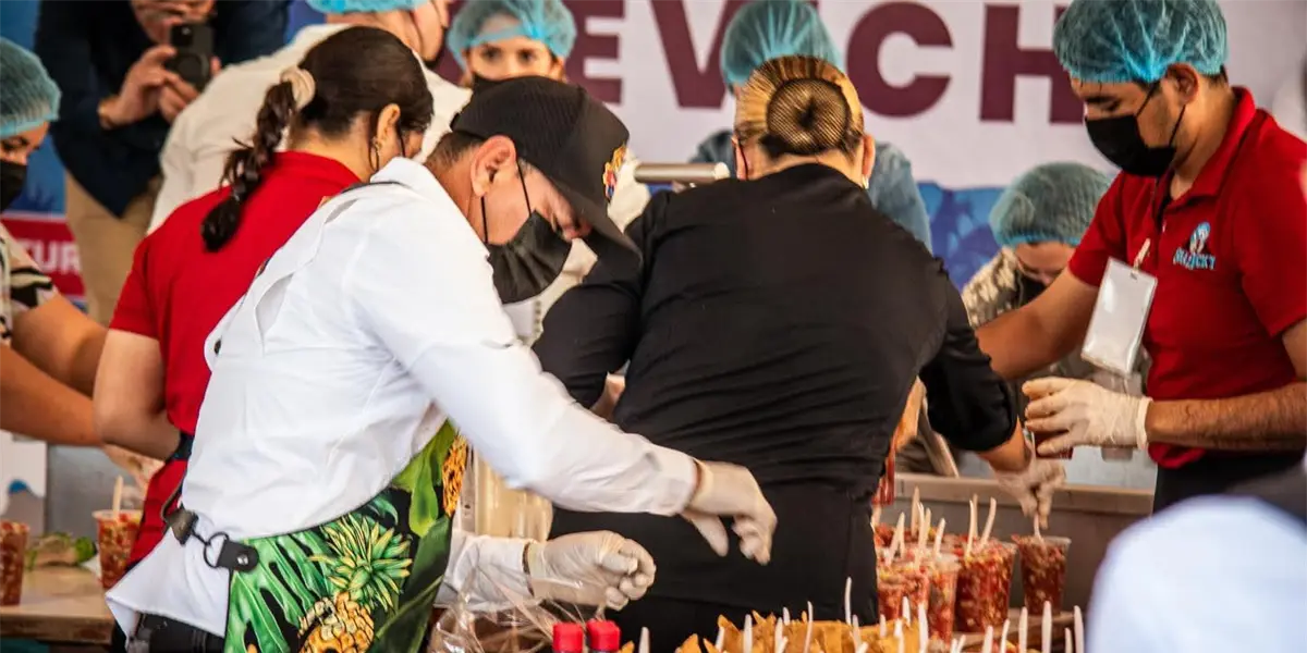 Uno de los momentos más esperados llegó cuando los restauranteros prepararon un mega ceviche de 700 kilos, que fue repartido de manera gratuita. La fila se formó rápido, pero nadie se quejó. Al contrario: había sonrisas, fotos, comentarios y esa sensación de estar compartiendo algo especial. Comer juntos también es celebrar.