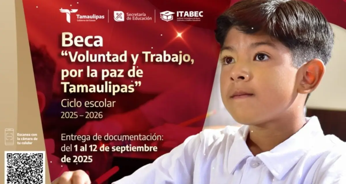 El Gobierno del Estado de Tamaulipas, a través de la Secretaría de Educación (SET) y el Instituto Tamaulipeco de Becas, Estímulos y Créditos Educativos, invita a tramitar la Beca “Voluntad y Trabajo, por la paz de Tamaulipas”, del ciclo escolar 2025-2026.