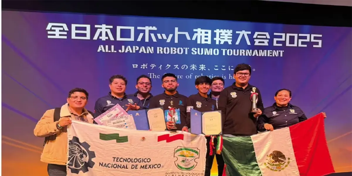 La delegación del TecNM Tlalnepantla, integrada por Diego Guzmán Silverio, Rodrigo Ortiz Luis, Kevin Ferioli Castellanos, Luis Cortés Hernández, Omar Antonio Barrera Spíndola y Marisol Coba Martínez, representó a México en el All Japan Robot Sumo Tournament en Tokio, donde compitieron contra más de diez países.