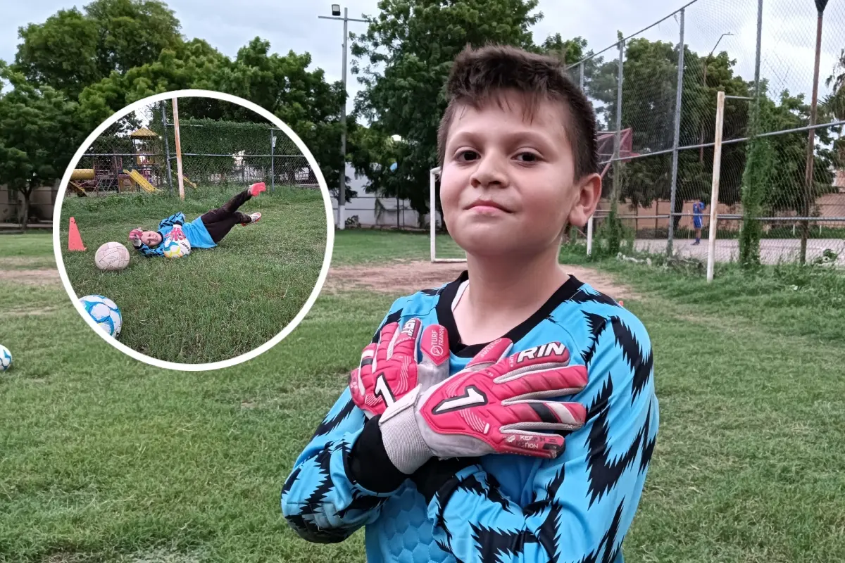 A sus 10 años, Ian Carlo García sueña con jugar en Cruz Azul y Real Madrid; entrena con el profesor Omar Rocha y destaca como portero del Club Lombardo en Culiacán