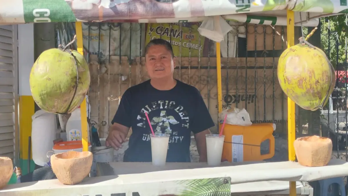 Además de cocos y agua de coco, ahora ofrece horchata. A sus 67 años, ya pensionado, asegura: “Es muy bueno tomar agua de coco en ayunas”.