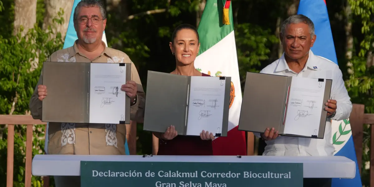 Por primera vez, los presidentes de México, Guatemala y Belice se reunieron en Calakmul para firmar un pacto de cooperación histórica en favor de la selva maya.