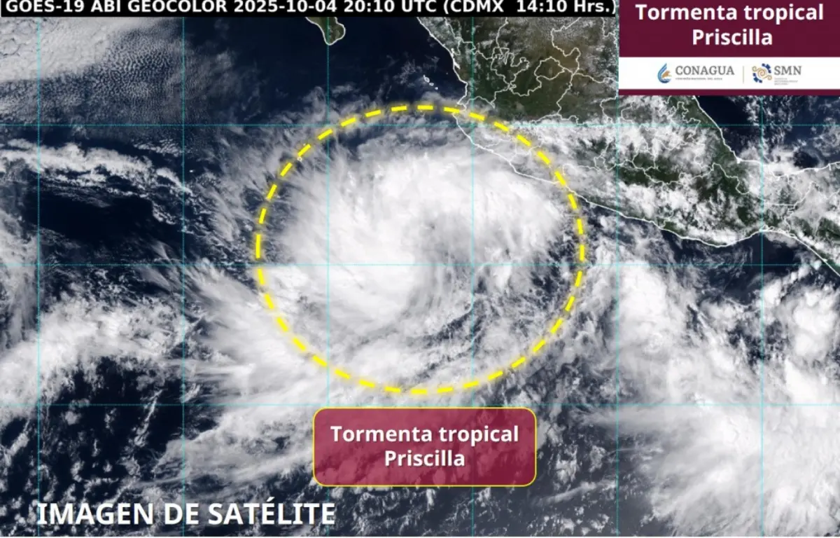 Este sábado se formó la tormenta tropical Priscilla en las costas del Pacífico mexicano. Estará afectando a varios estados con lluvias intensas, rachas de viento y oleaje elevado