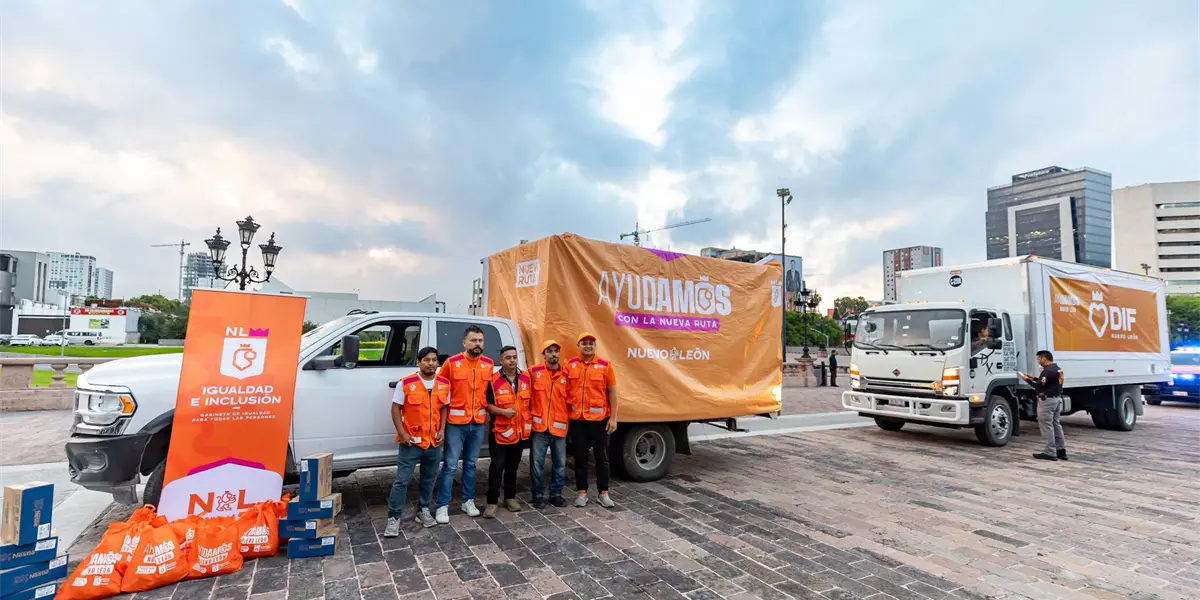 Van plenamente equipados con helicópteros, vehículos terrestres, lanchas y motos acuáticas, además de 20 toneladas de víveres recolectados por el DIF Nuevo León y la Secretaría de Igualdad e Inclusión.