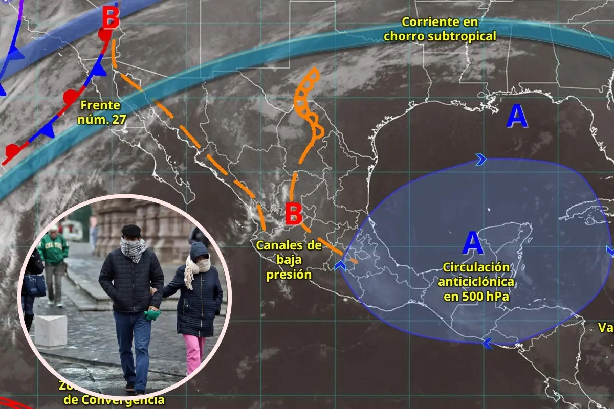 Su interacción con las corrientes en chorro polar y subtropical, así como con una vaguada en niveles altos de la atmósfera, causará un ambiente más frío de lo habitual, acompañado de vientos intensos y lluvias en algunas entidades.