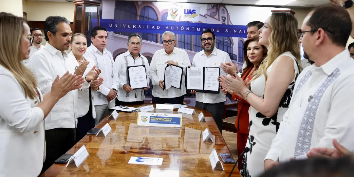 Acompañados por el gobernador Rubén Rocha Moya como testigo de honor, oficializaron una alianza entre el Ayuntamiento y la Universidad Autónoma de Sinaloa (UAS) para trabajar juntos en beneficio de la ciudad.
