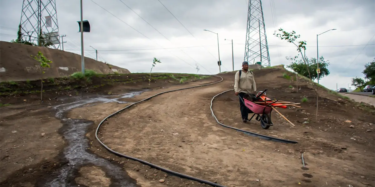 La mejora de este espacio se suma al proyecto lineal que incluye el jardín ornamental del talud ubicado frente a la colonia Los Huizaches, transformando este entorno natural en un área embellecida y segura para las familias del sector.