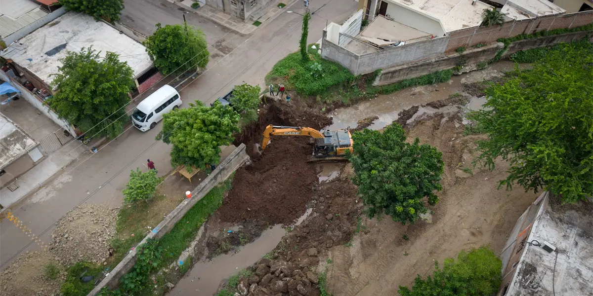Avanza construcción de muro de contención en colonia que se ubica al sur de Culiacán para prevenir riesgos en esta época de lluvias