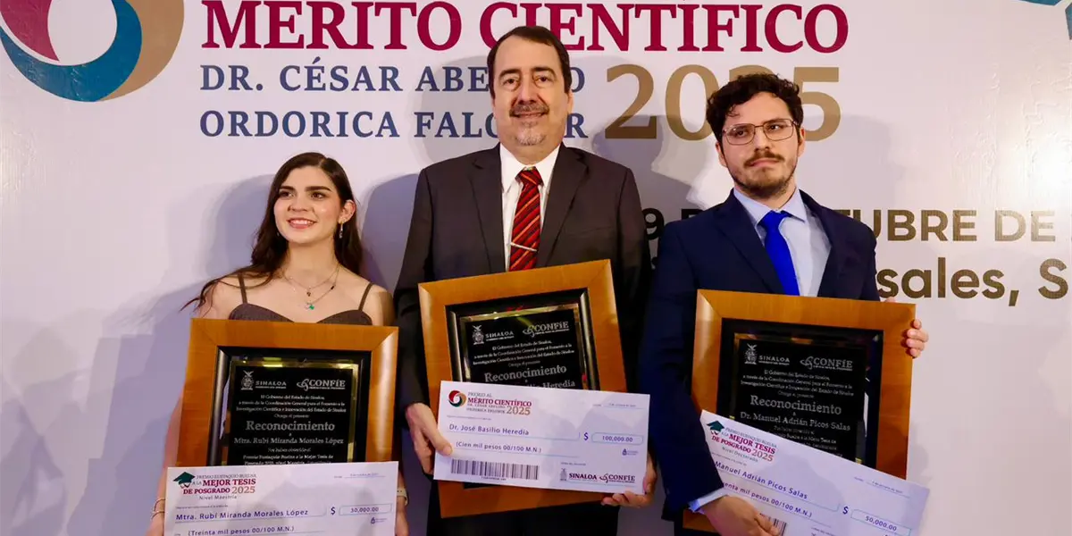 Culiacán, Sinaloa.- El doctor José Basilio Heredia, investigador del Centro de Investigación en Alimentación y Desarrollo (CIAD), recibió el Premio al Mérito Científico “Dr. César Abelino Ordorica Falomir” 2025, otorgado por el Gobierno del Estado de Sinaloa a través de la Coordinación General para el Fomento a la Investigación Científica e Innovación (CONFÍE).
