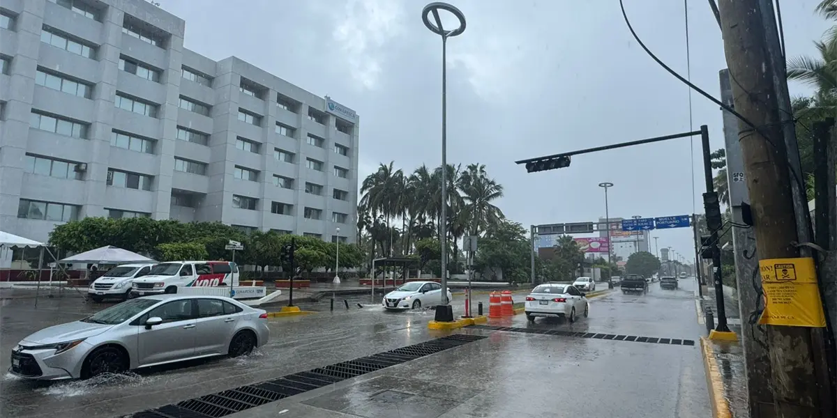 Durante una fuerte lluvia en Mazatlán, se activó con éxito el nuevo sistema de drenaje pluvial y cárcamo de rebombeo en la zona dorada, eliminando el histórico problema de encharcamientos en Camarón Sábalo