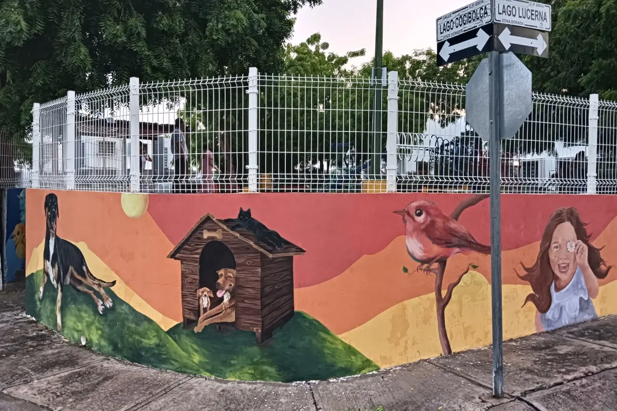 Recientemente, una de las bardas del parque fue transformada en un colorido mural que celebra la vida, la paz y el vínculo entre las personas y los animales. En él se pueden ver figuras de mascotas locales, flores y aves, junto a la frase: “La paz comienza con una sonrisa”.