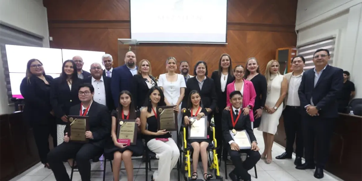 Palacios Domínguez otorgó el galardón a Martha Mariana Romero Uribe en la categoría Mérito Artístico-Cultural; Silvia Jael Ramírez Villela, en Mérito Discapacidad-Inclusión; Maximiliano Contreras Juárez, en Mérito Académico-Tecnológico; Juan Benjamín Ordorica Hernández, en Mérito Cívico-Social; y Gabriela Nataly Soltero Casas, en Mérito Deportivo.