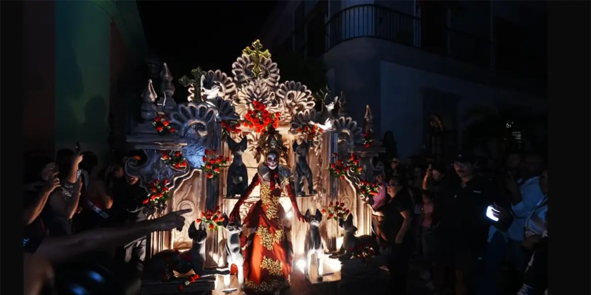 En la procesión llamó la atención la espectacular Catrina, creación única del artista mazatleco Luis Antonio "Momo" Ríos.
