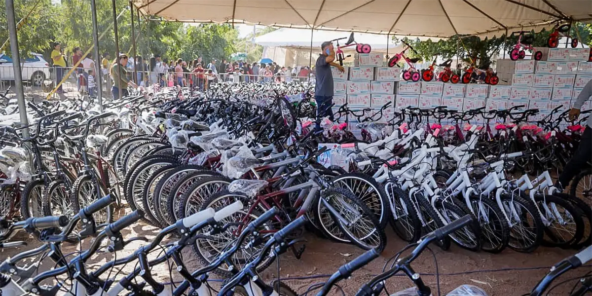 El Sistema DIF Sinaloa entregó más de 3 mil bicicletas, además de juguetes, dulces y alimentos para las familias asistentes. Rocha Moya aseguró que ningún niño se quedará sin su regalo, y que las entregas continuarán la próxima semana en los hogares donde aún falte por llegar la bicicleta.