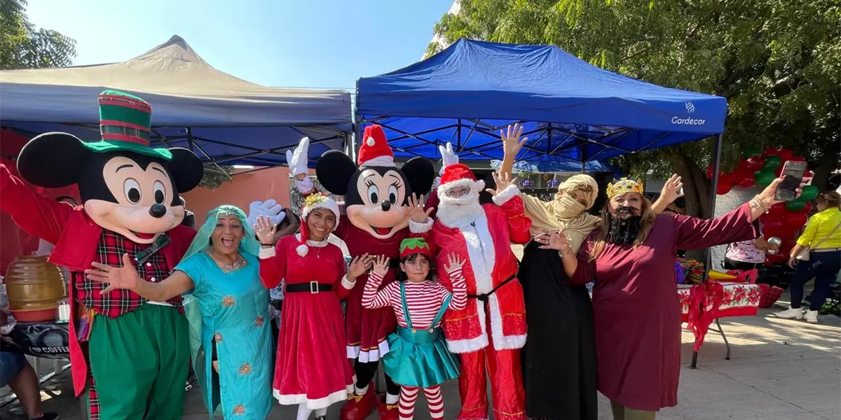 Mickey y Minnie Mouse también asistieron a la fiesta y una vez terminado el recorrido por el Tianguis bailaron y cantaron canciones propias de la temporada navideña invitando a los niños a acompañarlos.
