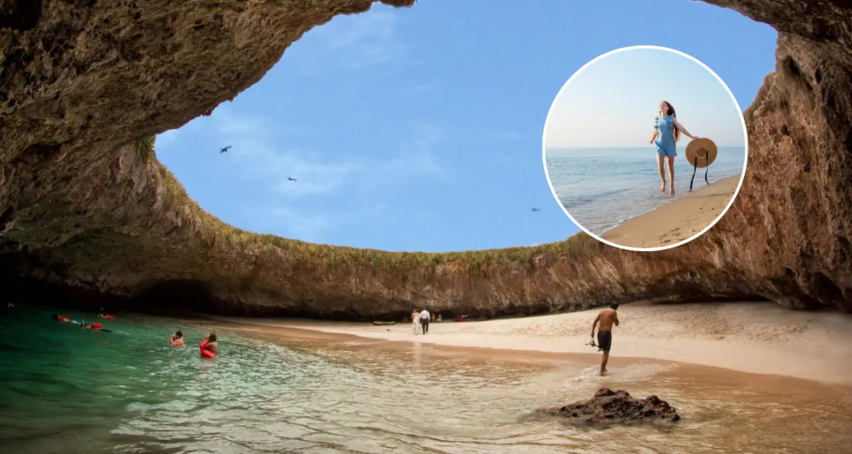 Playa Escondida o Playa del Amor es conocida como una de las más bonitas del estado de Nayarit. Se encuentra ubicada dentro de las Islas Marietas y es una reserva natural que cuenta con agua cristalina, arena blanca y diversas especies marinas.