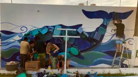 Se trata de un creativo trabajo artístico conformado por una silueta de ballena conformada con basura plástica sobrepuesta. La obra se hizo en coordinación con la Institución de Asistencia Privada Operación Ambiente que dirige Ana Karen Castro Olivas y el programa Construyendo Paz que coordina Javier Llausás, con la participación de César Zamora.