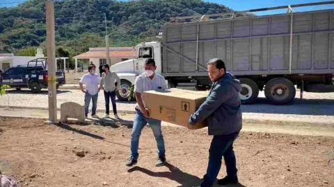 Desde temprana hora un camión cargado de hornillas y refrigeradores llegó a la comunidad en construcción, con el fin de continuar dándole cumplimiento a los compromisos realizados por el mandatario estatal, Dr. Rubén Rocha Moya, en el el pueblo del nuevo Santa María en el Rosario, Sinaloa.