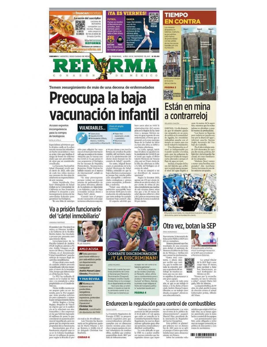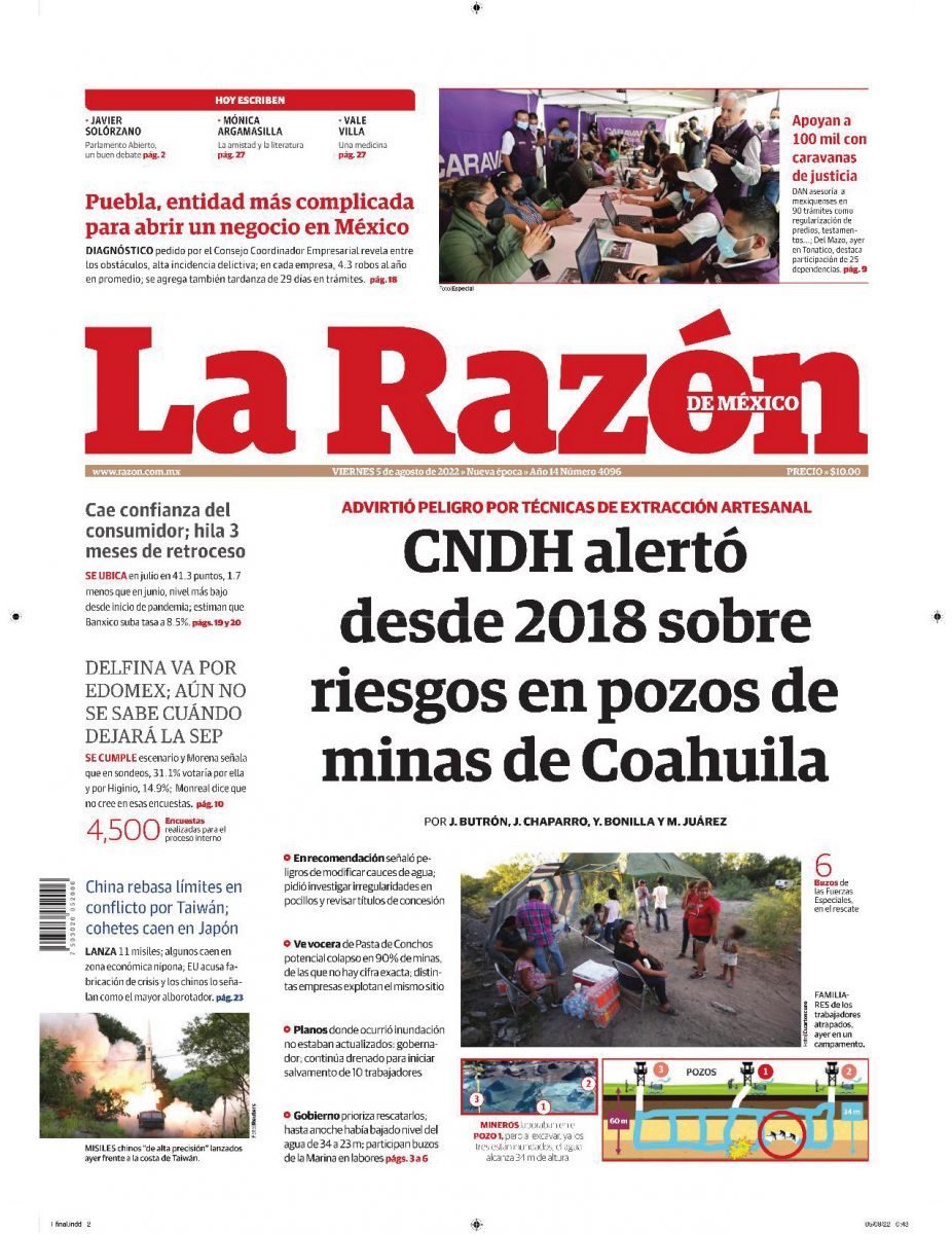 Infórmate con nosotros de la noticia que está circulando este 05 de agosto de 2022 en los principales diarios de la República Mexicana