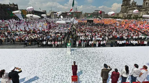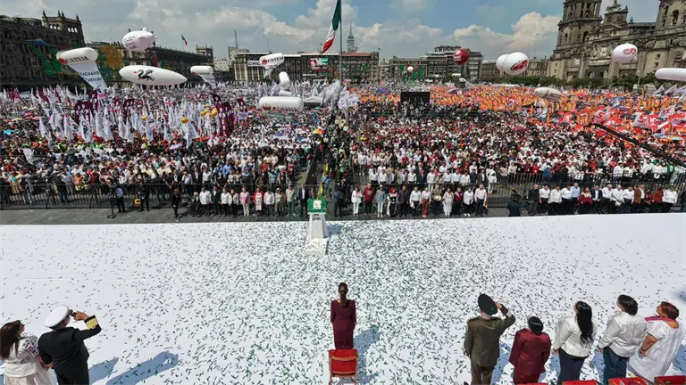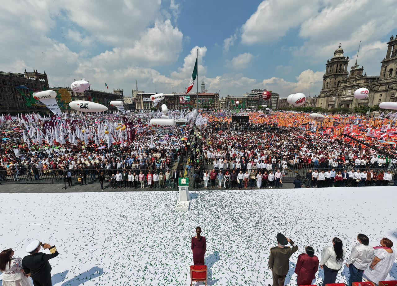 “Desde este Zócalo histórico reafirmamos nuestro compromiso con la Cuarta Transformación de la Vida Pública de México. Vamos por el camino correcto, de pie, con la fuerza de nuestra historia, el orgullo de nuestro presente y la esperanza del porvenir”, afirmó la mandataria.