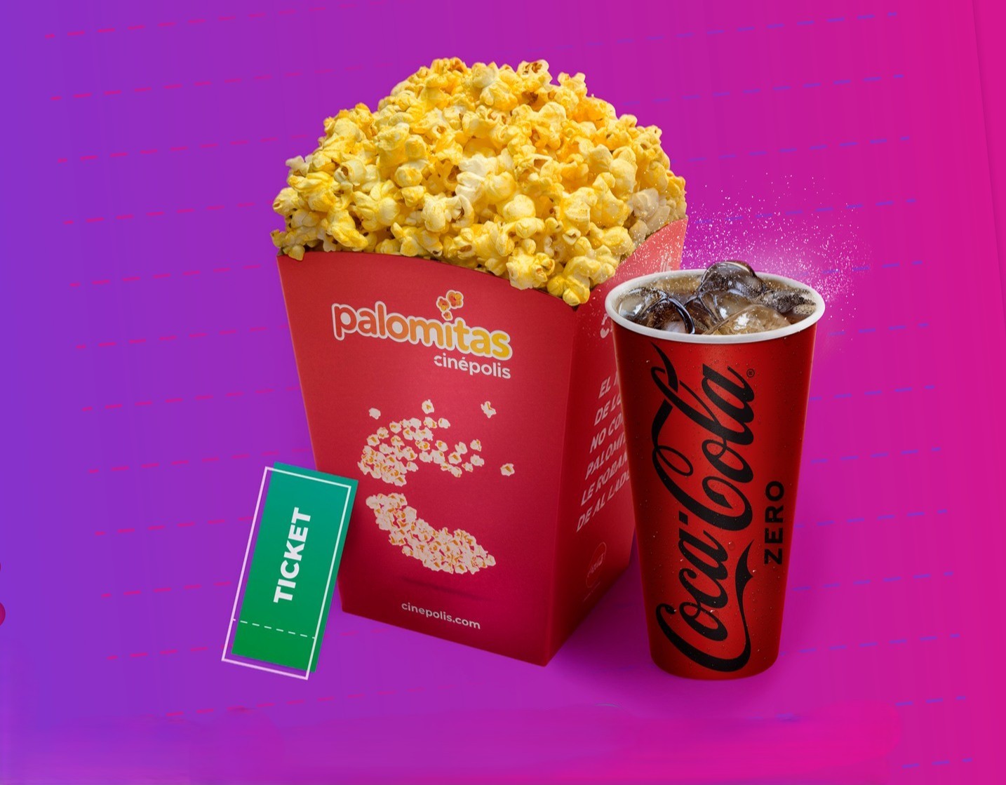 - Combo Cuates $242 pesos: 1 palomitas grandes y 2 refrescos grandes