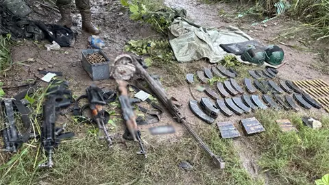 En total, las fuerzas de seguridad aseguraron dos armas largas, 1 mil 754 cartuchos útiles, 47 cargadores, 34 artefactos explosivos improvisados, ocho granadas tipo mortero, un paquete de marihuana, un paquete de cocaína, dos radios, cuatro vehículos con blindaje artesanal, uno de ellos simulado con letras de una institución de seguridad, seis chalecos tácticos con placas y equipo táctico.