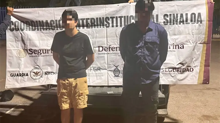 Dos jóvenes fueron detenidos por portar cigarros de marihuana durante un patrullaje de seguridad del Grupo Interinstitucional en Villas del Río, Culiacán