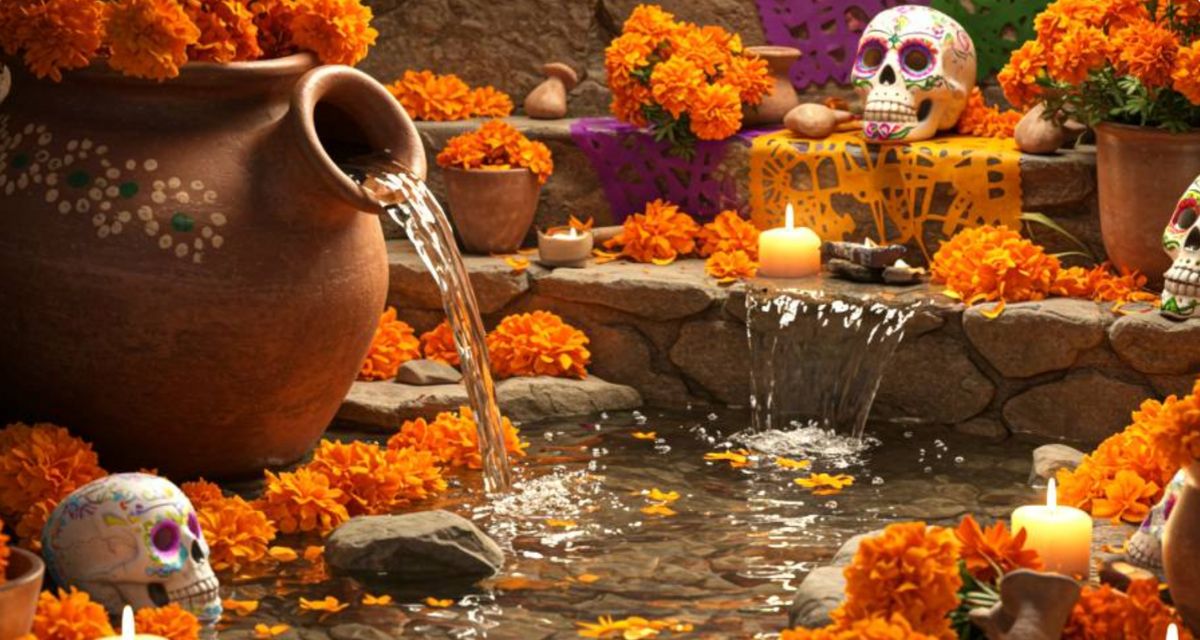 Entre los elementos del altar, el agua tiene un significado especial, pero no es el único. Cada componente del altar, desde velas hasta calaveras de azúcar, cumple una función ritual y simbólica que refleja la riqueza cultural y espiritual de esta festividad, convirtiendo cada altar en un homenaje único y lleno de tradición.