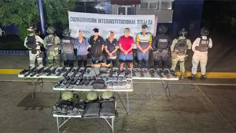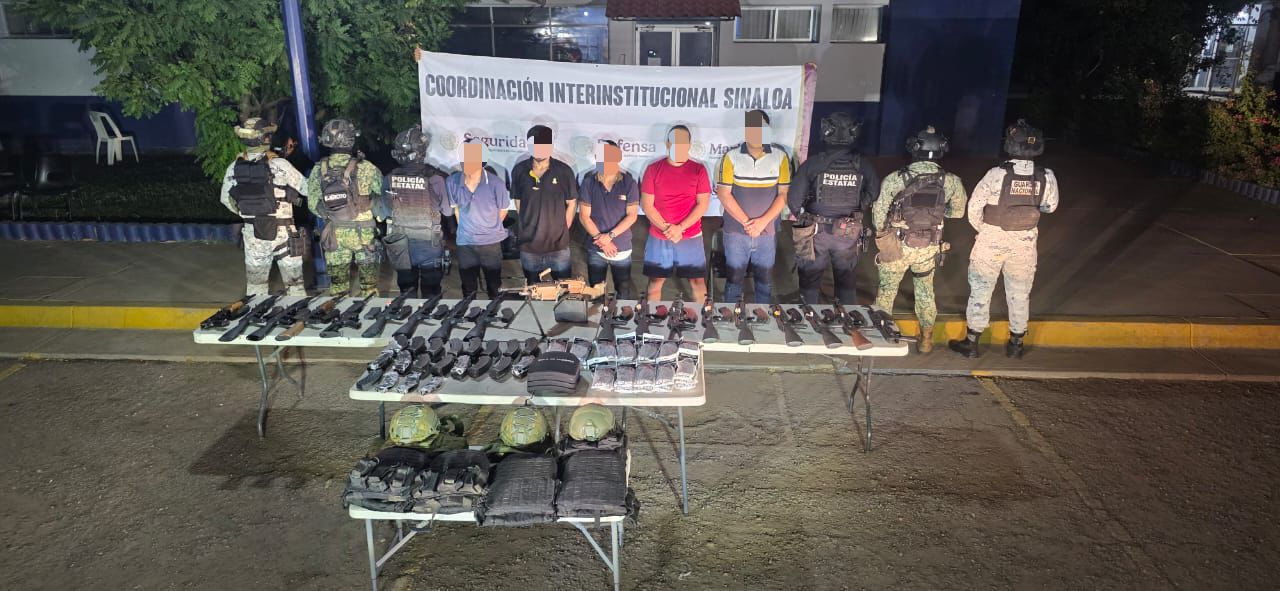 Un operativo conjunto entre fuerzas federales y estatales en Culiacán culminó con la detención de cinco hombres armados y el decomiso de explosivos, armas y equipo táctico.