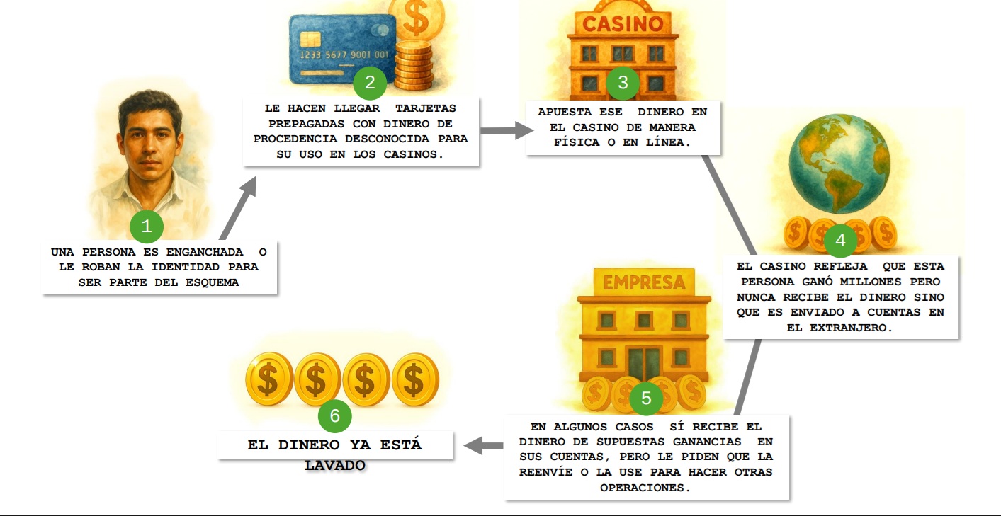 El análisis incluyó tanto casinos físicos como plataformas virtuales, un sector que, según las autoridades, “por su naturaleza de manejo intensivo de efectivo y transacciones digitales, presenta riesgos relevantes de lavado de dinero”.