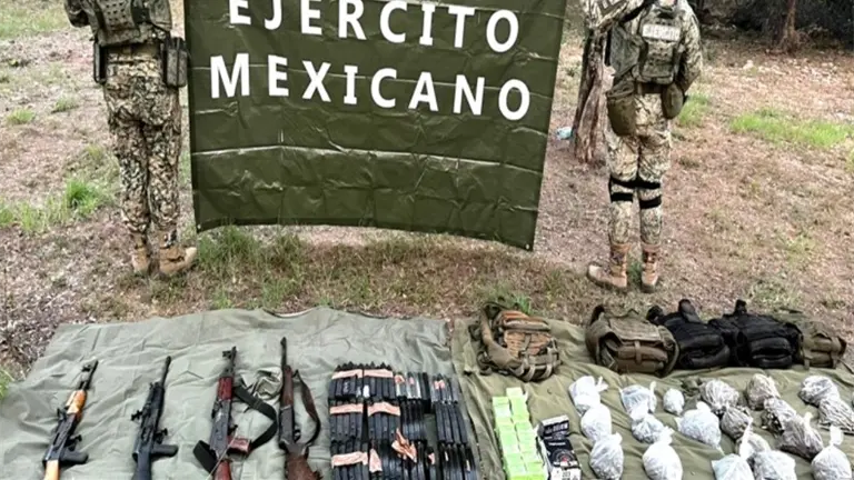 Mientras que las plantas de droga fueron destruidas en el sitio, las municiones, armas y equipo táctico fueron asegurados y puestos a disposición del agente del Ministerio Público correspondiente, para iniciar la carpeta de investigación del caso.