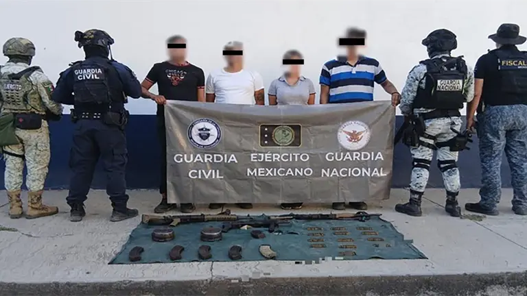 Durante los operativos, fueron detenidas cuatro personas, una de ellas menor de edad, y se aseguraron más de 200 cartuchos, armas largas, cargadores y vehículos.