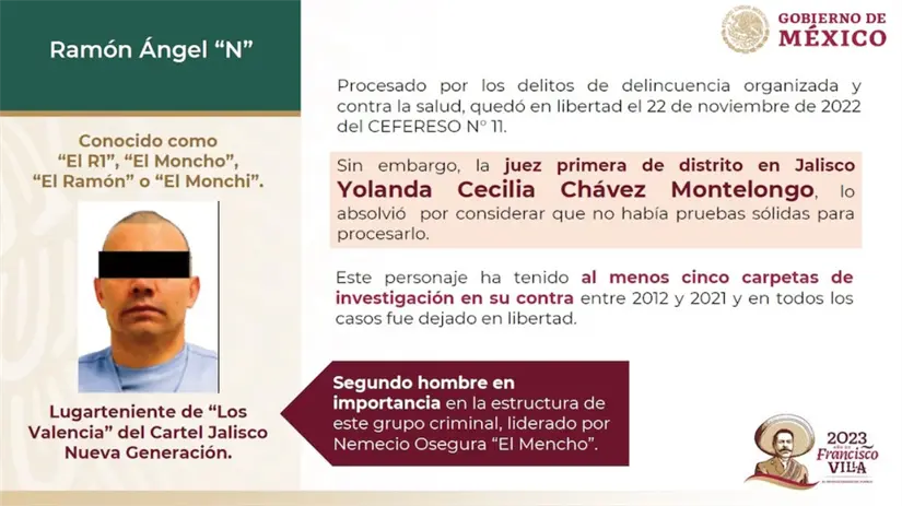 También conocido como "El Moncho", "El Ramón" o "El Monchi", este sujeto ya había sido arrestado y procesado por los delitos de delincuencia organizada y contra la salud, pero quedó en libertad el 22 de noviembre de 2022.