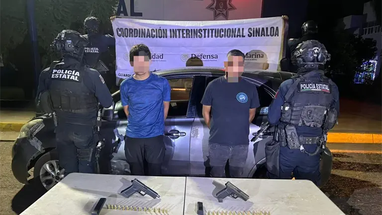 En un operativo coordinado entre fuerzas federales y estatales, elementos de la Secretaría de Seguridad Pública de Sinaloa detuvieron a dos personas, una de ellas menor de edad, que portaban armas de fuego y se desplazaban en un vehículo sobre la carretera a Culiacancito. E
