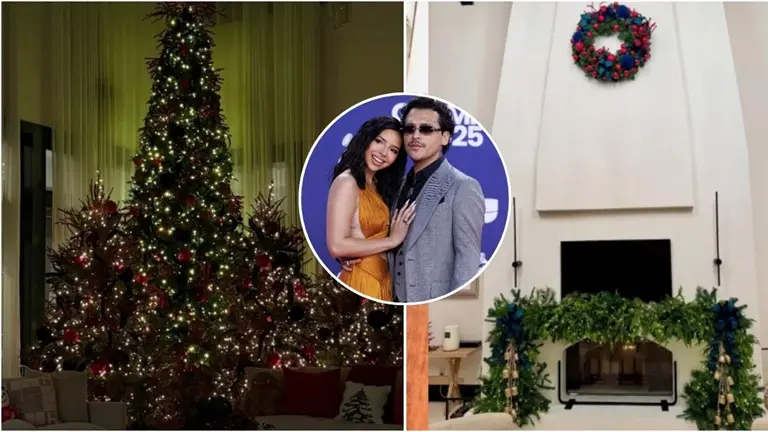 Ángela Aguilar y Christian Nodal abren las puertas de su hogar para mostrar una decoración navideña inspirada en el estilo clásico contemporáneo, marcada por árboles imponentes y un ambiente de calidez