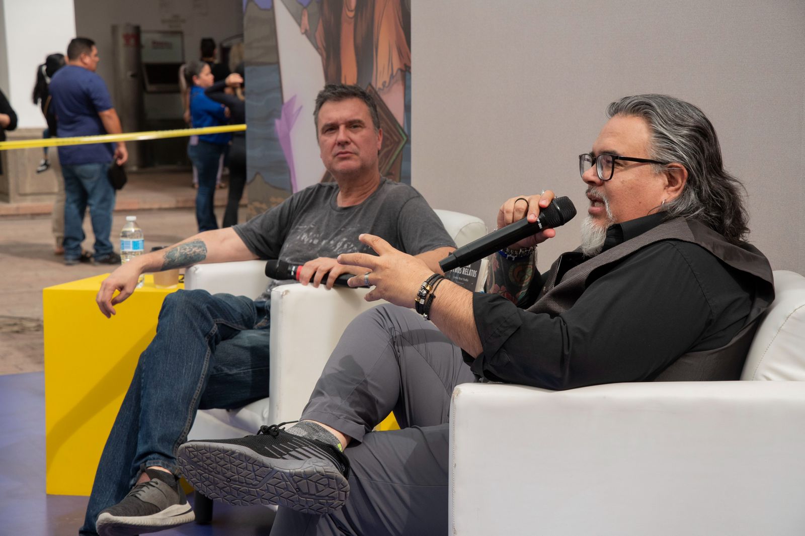 El evento se realizó en el Foro del Patio del Ayuntamiento, donde el escritor César Gándara acompañó al autor para entablar un diálogo sobre narrativa, memoria, territorio y la voz literaria del norte de México.