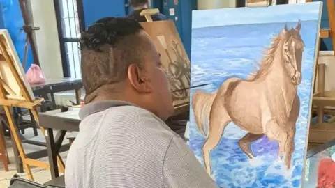 Obras del sinaloense Gabriel Cortés llegan a Europa y Asia; Pinta con su boca y pincel